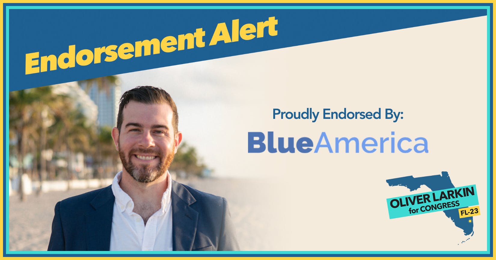“Blue America’s work of electing more progressives to Congress is essential to building a Democratic House majority and putting a check on Donald Trump,” said Oliver Larkin. “Our campaign is grateful to have their endorsement. Together, we will elect the progressive Democratic House majority in South Florida and nationwide to fight for the bold economic agenda this historic moment demands.”